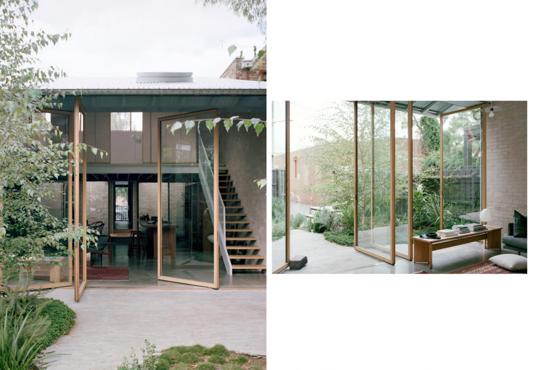 Australian cottage extension with rotating glass doors by Lovell Burton