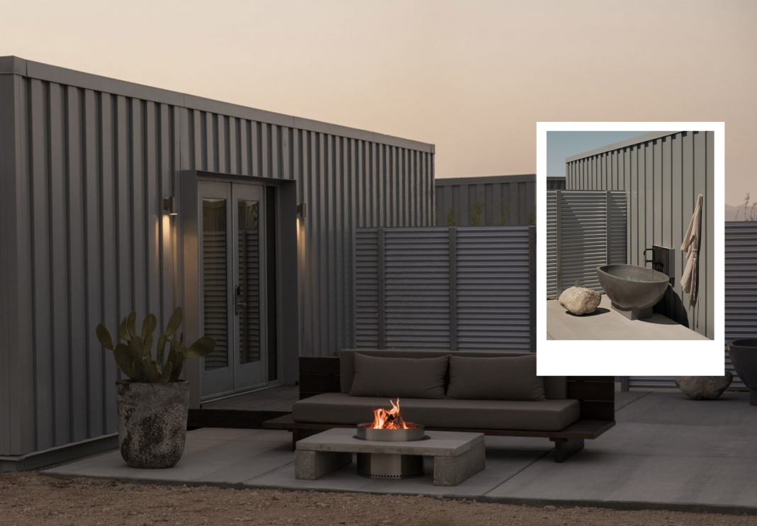 Recognizing that the true luxury of the desert lies in the vast, open sky and the extreme solitude, the designers placed enormous emphasis on private outdoor spaces. Every single room features a private patio with an individual Solo Stove fire pit and lounge chairs.