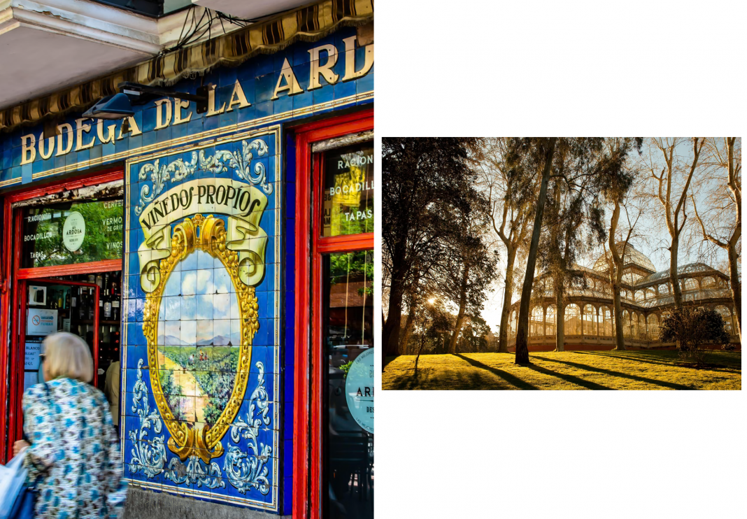 The change of season also transforms Madrid’s extensive green spaces into a spectacle of vivid colour, perfect for a leisurely afternoon stroll. Parque del Buen Retiro, a UNESCO World Heritage site, is a magnificent place to spend a couple of hours, its oak, chestnut, and willow trees exploding in startling magenta and ochre tones. Exiting the park on the east side, you’ll find that Calle de Ibiza and the surrounding streets have evolved into a major gastronomic hotspot.