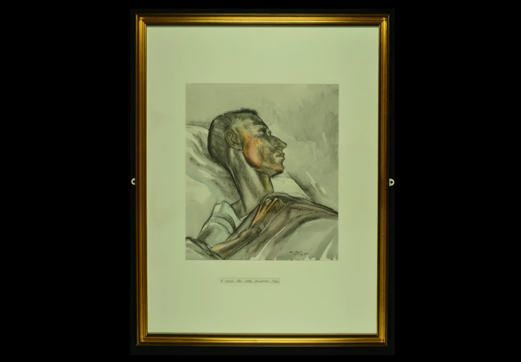 Taylor’s process was rooted in necessity and immediacy. While in the camp and immediately after its liberation, he produced quick sketches of the survivors, capturing their faces before the effects of starvation, disease, or even death, could erase their individuality. He later returned to his studio to develop these field sketches into a series of paintings, transforming what he had seen into nine enduring works that now reside in the Wiener Holocaust Library’s collection. These works stand as a crucial historical record, distinguished by the fact that they were created by one of the individuals who first broke through the walls of horror, offering a perspective unlike that of a distant war artist.