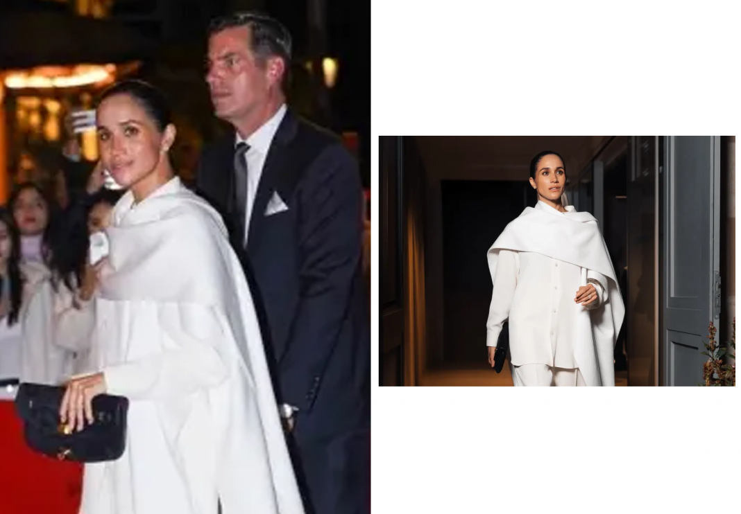 The Duchess of Sussex’s presence at the Balenciaga show was a notable event, marking both her first-ever appearance at Paris Fashion Week and her first trip to Europe since the Invictus Games in 2023. She arrived looking flawlessly “minimalist yet luxe,” stepping out in a full Balenciaga outfit that garnered immediate attention. The ensemble featured a flowing white cape elegantly layered over a matching button-down shirt and wide-legged trousers. Her look was polished with a sleek, slicked-back low bun, minimal jewellery—a single gold necklace and small diamond earrings—and stark black accessories, including a rectangular clutch and sharp pointed-toe heels.
